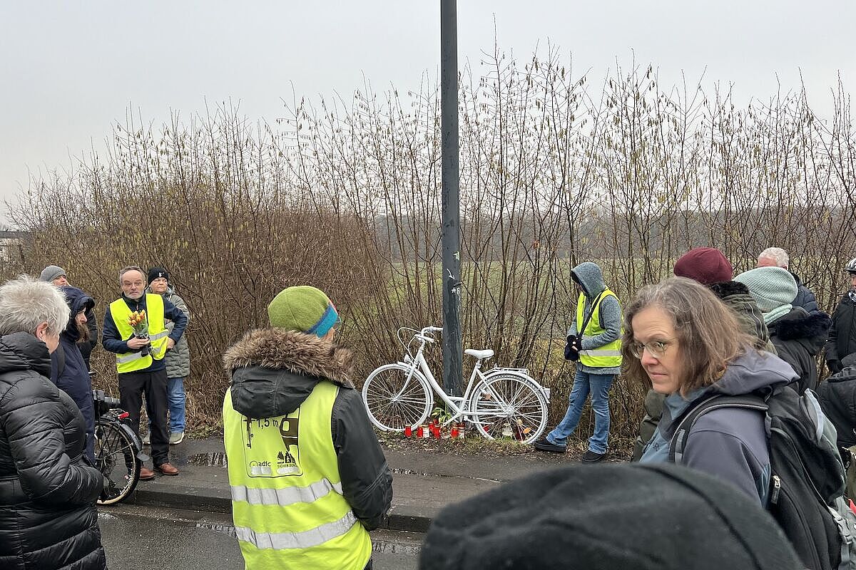 An der Unfallstelle wurde ein Geisterrad – ein weiß lackiertes Fahrrad – als dauerhaftes Mahnmal aufgestellt. In einer Schweigeminute hielten die Teilnehmenden inne, um des Opfers zu gedenken.